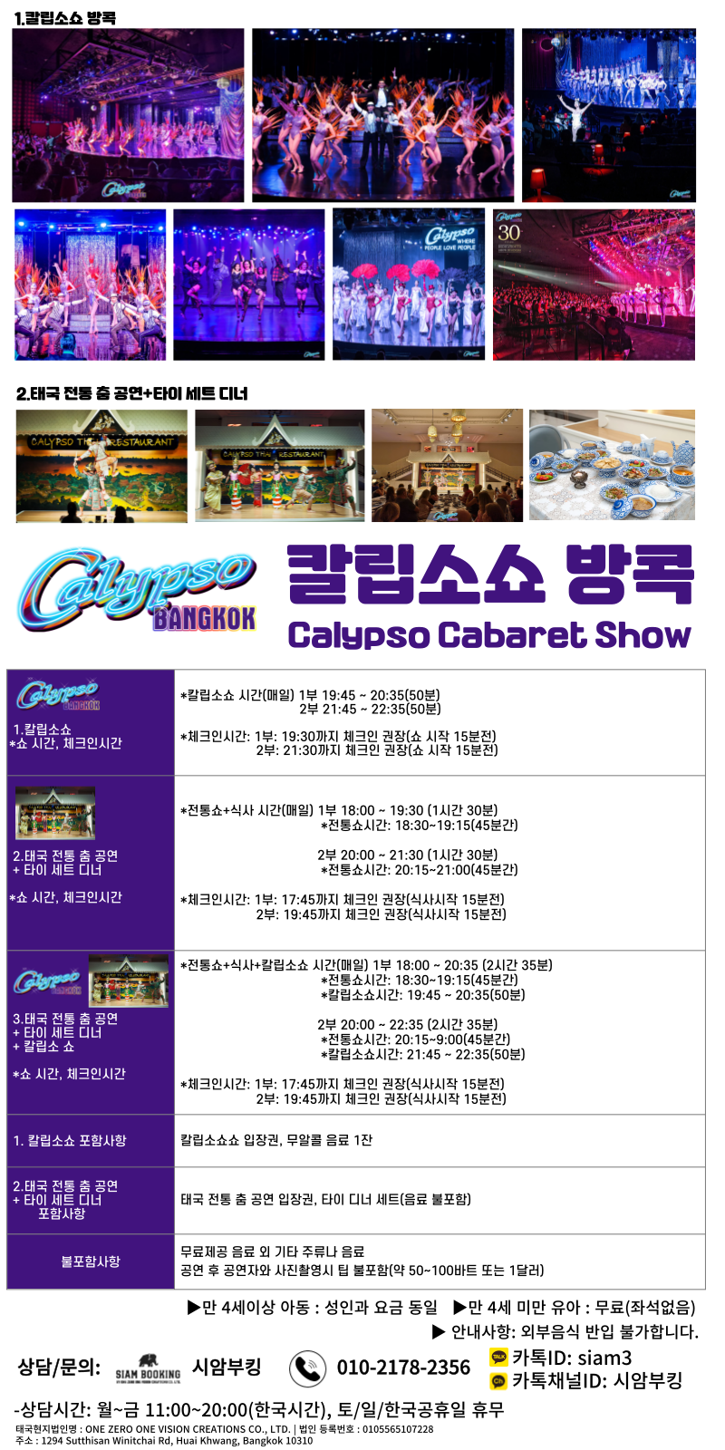 1. 이용날짜 입력, 쇼종류/시간(1. 칼립소쇼, 2.태국전통춤공연+디너, 3.태국전통춤공연+디너+칼립소쇼) 관람 인원수 만큼 선택 후